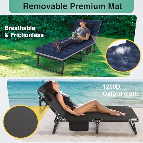 Suteck - Suteck Camping Cot, 5+2 Positions Adjustable Reclining Folding Camping Cot Sleeping Bed Cots for Adults Outdoor Portable Chaise Lounge Chair W/Carry Bag Pillow Cushion for Home Nap Beach Travel