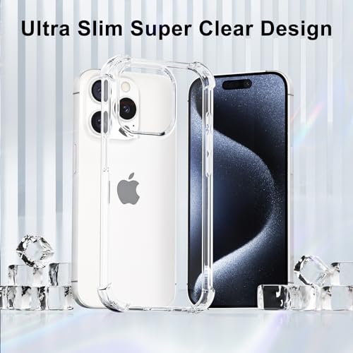 Svanove - for iPhone 15 Pro Phone Case Clear, Transparent Crystal Thin Slim Flexible TPU Cover, Non-Yellowing Soft Silicone for Women Girl Cute, Protective Shockproof Bumper, Clear