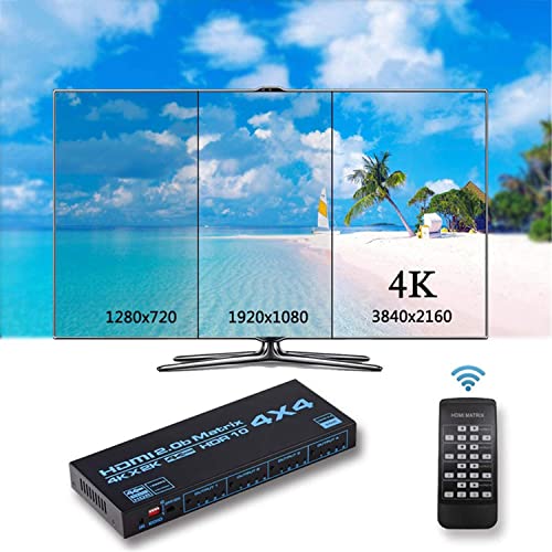 XYKJOBC - Swallows 4X4 Matrix Selector, 4K HDMI Matrix 4 Inputs 4 Outputs HdMI Matrix 2.0 Ports 4x4 Support 4K@60Hz 4K Dolby Vision HDR HDCP 2.2 Remote Control Support