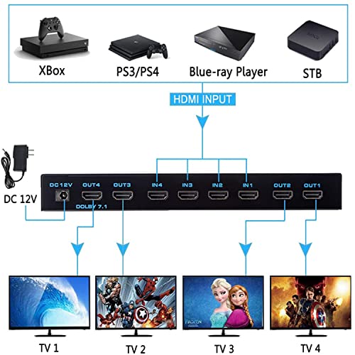 - * Distribution Function: Assign any HDMI input to a synchronous HDMI signal output 1/2/3/4 to get the same display.