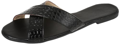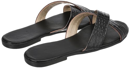 SWAY - SWAY Flat comfortable black embedded outsole with a simple metallic croco criss-cross strap upper