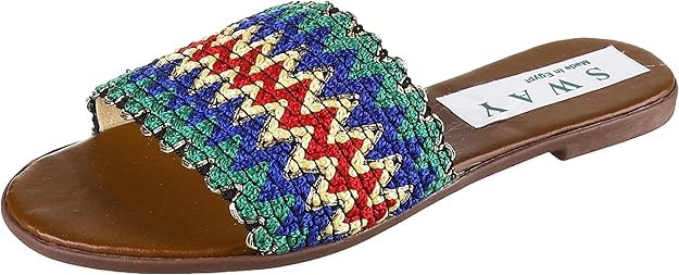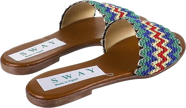 SWAY - SWAY Flat spongy cushioned insole for amazing comfort and a braided faux soft leather upper,Mustard yellow ×green 38 EU