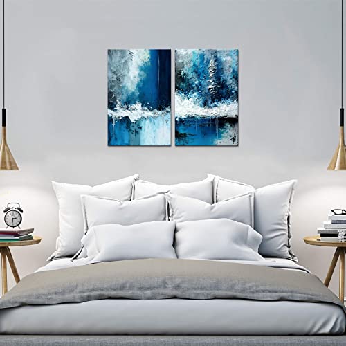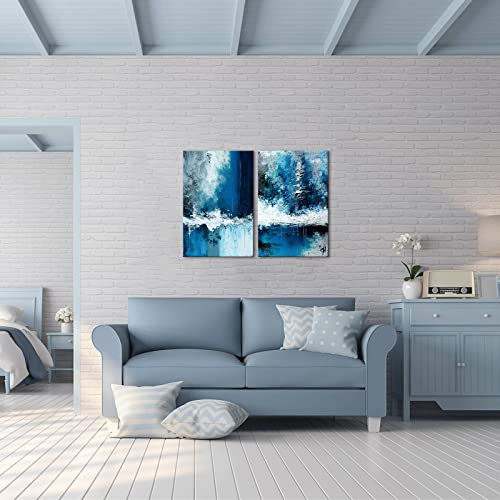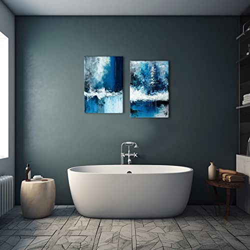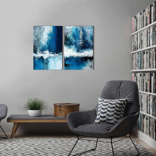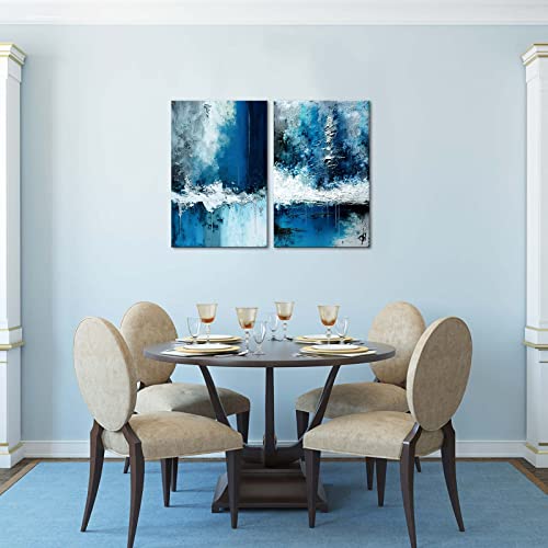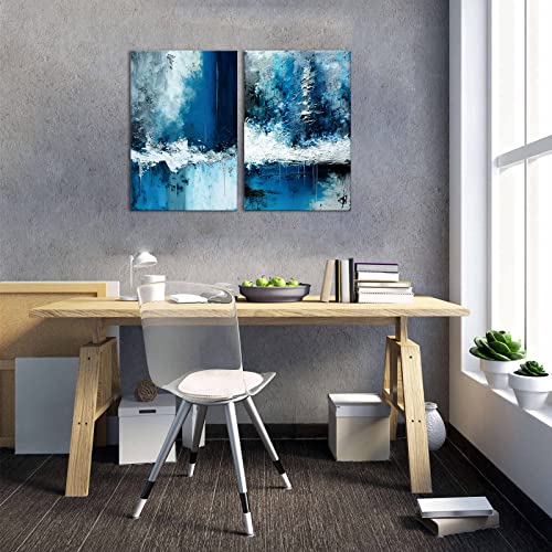 - 【مقاس اللوحة الفنية الجدارية】: يبلغ مقاس كل قطعة 16 × 24 انش. مجموعة من 2 قطعة فنية جدارية تجريدية زرقاء.