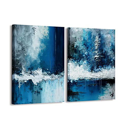 SWDRYUZ - لوحة فنية تجريدية للحائط من سودريوز ديكور حائط ازرق كحلي مجردة باطار لغرفة النوم وغرفة المعيشة والمطبخ والممر جاهزة للتعليق 16 انش × 24 قطعتين