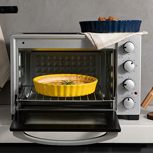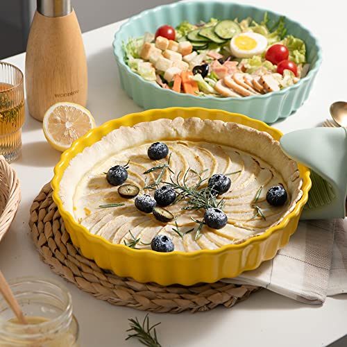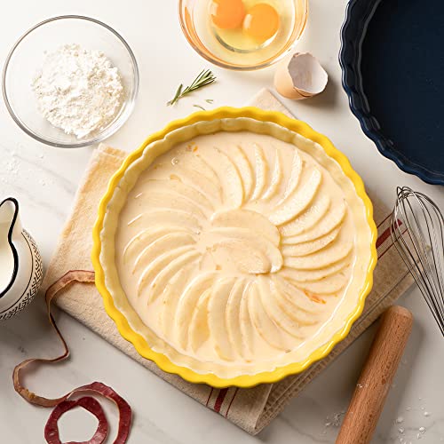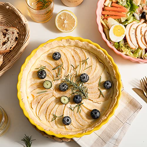 Sweejar - SWEEJAR Porcelain Pie Pan, 9.5-Inch Round Corrugated Tart Dish, Non-Sticky Ceramic Quiche Plate for Baking Apple, Cheese Sweet Potato, Chicken Pot Pies, Crustless Quiche (Yellow)