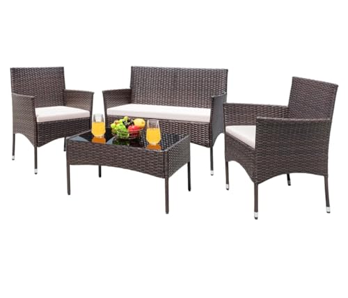 Generic - Sweet Furniture Patio Furniture Set of 4, Outdoor Rattan Chairs for Garden, Backyard, Porch, Poolside with Soft Cushion and Table Without Glass, Brown Beige