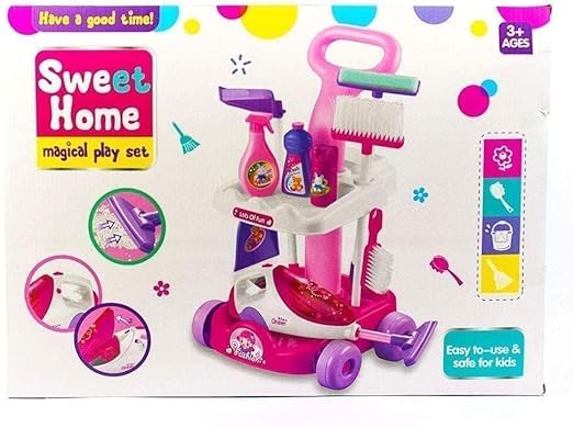 Generic - مجموعة العاب تنظيف من سويت هوم للبنات، فوشيا وابيض، مع موسيقى واضواء وادوات تنظيف