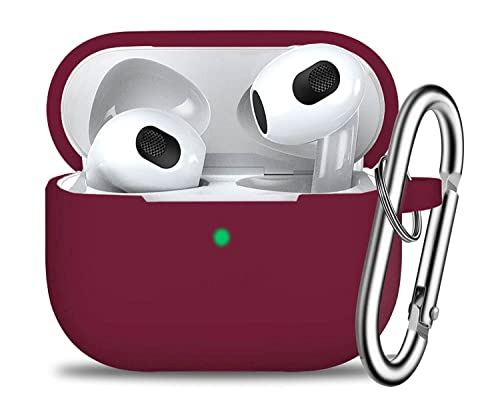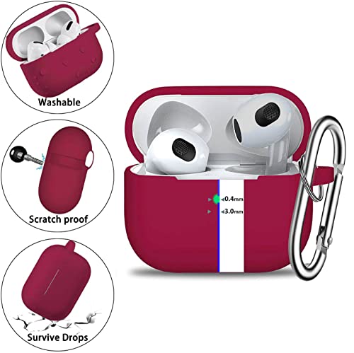 SWINCHO - جراب حماية لسماعات ايربودز الجيل الثالث مع سلسلة مفاتيح ومصباح ليد امامي مرئي لون احمر واين، سيليكون