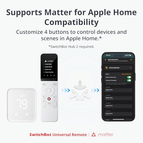 - Control Everything: Universal Remote can control Infrared Appliances such as air conditioners, TVs, lights, fans, and projectors at home. It also supports controlling Fire TV, Apple TV, and SwitchBot Bluetooth devices. Supports up to 25 devices in total: 10 infrared devices, and 15 Bluetooth devices, making your desktop cleaner by consolidating all your remotes.*Note: SwitchBot Hub is required, please use the promotion to redeem a hub. Not compatible with other branded hubs.