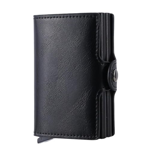 SWIUKPHE - Wallet for Men Credit Card Holder, Automatic Pop Up Wallet, Leather Slim Card Case Front Pocket Anti-theft Travel Thin Wallets, Metal Money Organizers