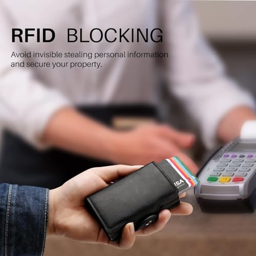 - 【Secure RFID Blocking Wallets for Men】: This card holder wallet can prevent readers from scanning your credit cards, debit cards, bank information, smart cards, RFID driving licenses, and other RFID cards. Therefore, you don't have to worry about the theft of RFID card information in crowded people.