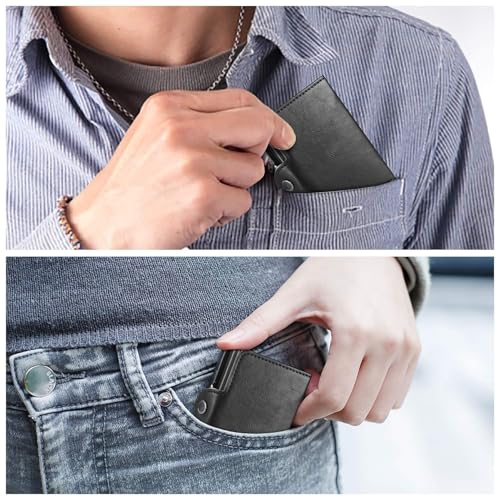 - 【High Quality Material】: Our pop up credit card holder uses a premium aluminum case, high-quality carbon fiber, and PU leather. Excellent quality, durable, simple, and fashionable style.