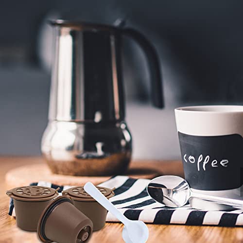 Syijupo - 4 x Refillable Reusable Coffee Capsules for Nespresso Machines Coffee Capsule with Mesh Filter and 2 Plastic Spoons - Brown