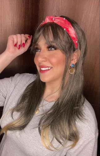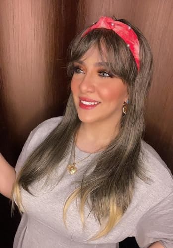 Generic - Synthetic Hair Wig Grey Mixed Blonde Wig With Front Bangs Natural Wave Synthetic Fiber Wig For Daily Wear
