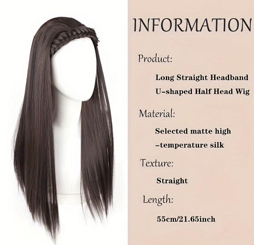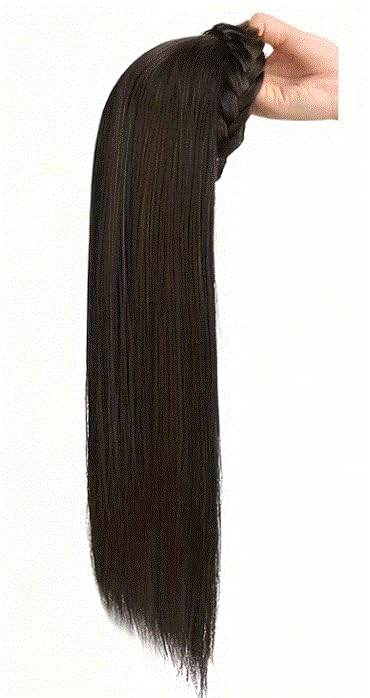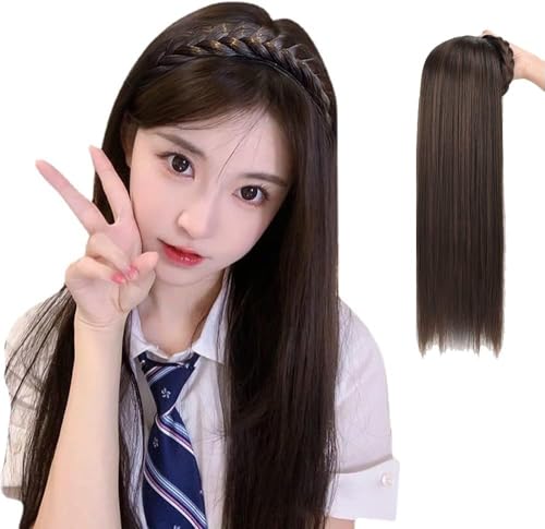 Generic - باروكة بشعر صناعي طويل وناعم مع مشبك للتثبيت، مع طوق شعر، باروكة شعر نصف مع رباط شعر منفوش بطول 50 سم - بني غامق، JW218-N 4