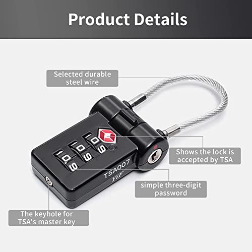 - 【خامة فاخرة】: أقفال الأمتعة TSA لكل قفل مصنوع من خليط معدني من الزنك عالي القوة والكابل مصنوع من ستيل قوي مقاوم للقطع، قوي بما يكفي لتحمل التعامل مع الأمتعة القاسية.