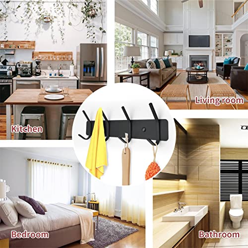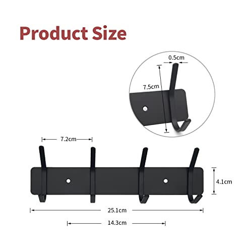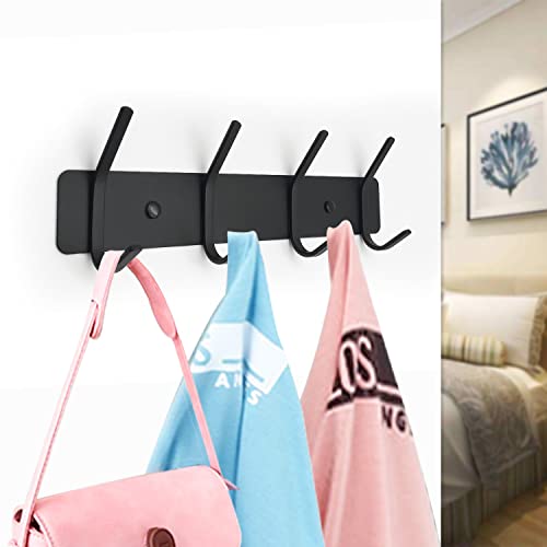 SYPEN - سايبين حامل معاطف يثبت على الحائط من الستانلس ستيل لغرفة النوم والحمام لتعليق المعاطف والملابس والجاكيتات (اسود، 4 خطافات، عبوة من قطعتين)