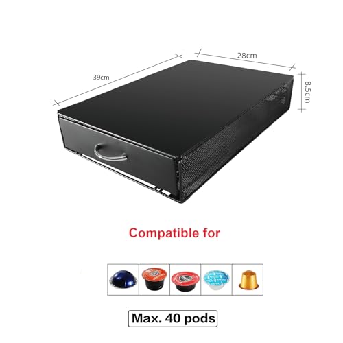 SYSYLY - Coffee Pod Holder Storage Drawer Compatible For Starbucks Verismo,Nespresso Vertuo,CBTL,Caffitaly,Lavazza Blue,K-fee systems,40 Pod Capsule Holder,Office or Home Kitchen Counter Organizer