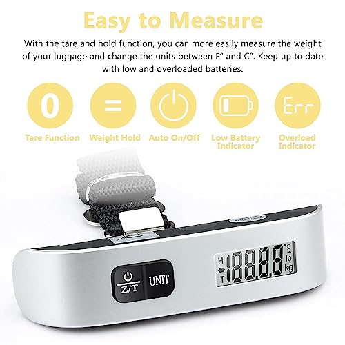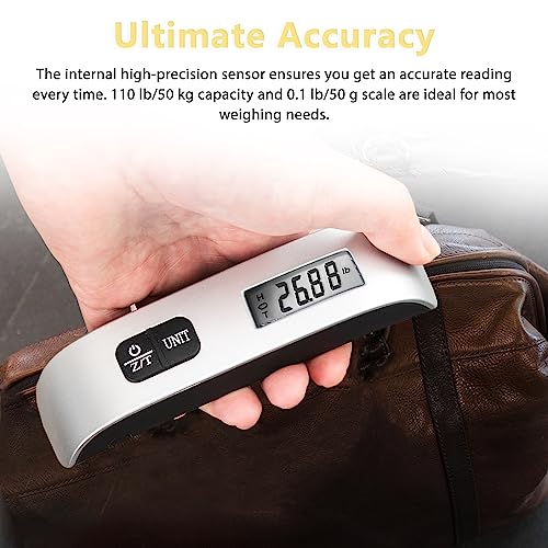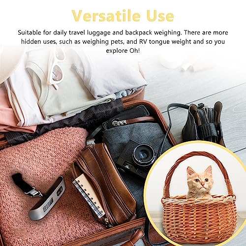 Szhuliee. - Luggage Scale for Digital Weight, Portable Travel Accessories, Suitcases Essentials, Bag, Pet Weighing, 110 Pounds, Battery Included, Silver