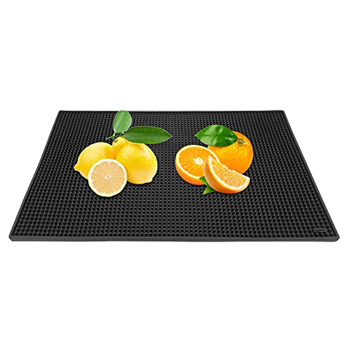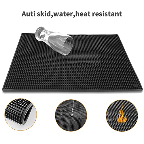 - ❤【Premium Quality Material】Our bar mats are made with highly durable rubber material that will last long for constant use. The material is unlikely to deform and even after several uses our bar mats for countertop stay new. Bar mat is microwave, freezer, oven and dishwasher safe. Universal black color classically matches bar, hotel, lobby lounge, restaurant and cafés