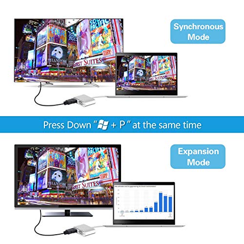- 【4 Display Modes】Multi-level and high-density shielding structure ensures high speed and good signal transmission, both video and audio. Our usb3.0 to hdmi vga dual output adapter also supports 4 display modes, including extension, synchronized, rotation and switching from main screen.