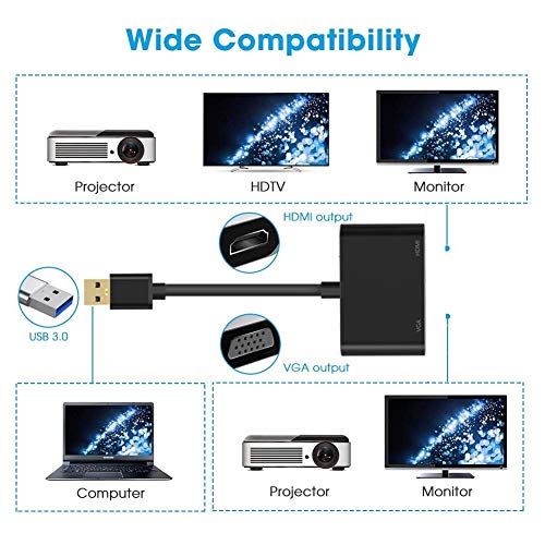 SZYCD - USB 3.0 to HDMI VGA Adapter, USB to VGA HDMI Adaptor, HD 1080P Converter Cable for Windows 7/8/10 Computers Laptop,Support Mac OS High Sierra, Not Support Linux,Chrome OS