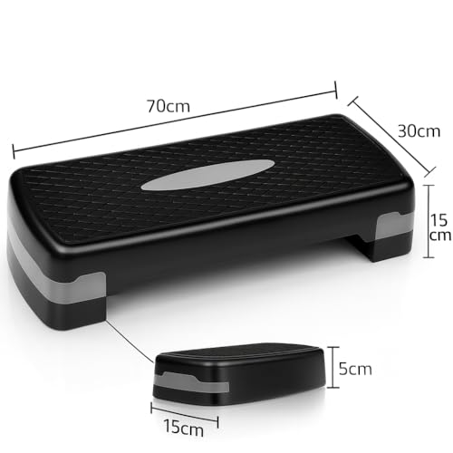 T-LOVENDO.ES - T-LOVENDO.ES Step platform adjustable in 2 heights, 68 x 28 x 10/15 cm, non-slip base, cardio, aerobics and home fitness, weight max. 150 kg, fitness equipment