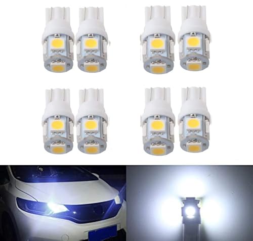 Generic - T10 LED Bulbs, Fit 194 168 175 2825 W5W Super Bright 12V White LED Bulb 5-5050 SMD License Plate Dashboard Dome Door Car Door Light - DC 12V - White - 8 Pack - by KaberTrade