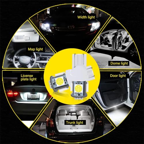 - Easy to install, no tools needed, these T10 LED bulbs have plug and play design so you can install it by yourself in your garage. Direct replacement for all T10 wedge bulb types