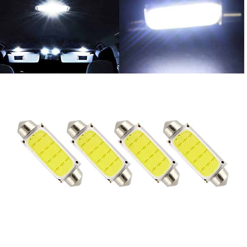Generic - مصباح ليد سيارة T11 COB DC12V LED ، فائق السطوع مناسب ل صالون السيارة و لوحة ترخيص قبة مصباح للسيارات ( ابيض 12 ليد - 41 مم - 4 قطع ) - من كابر تريد