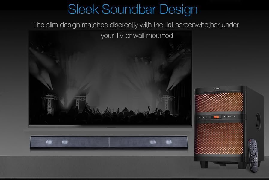 - Sleek Soundbar Design , The slim design matches discreetly with the flat screenwhether under your TV or wall mounted.