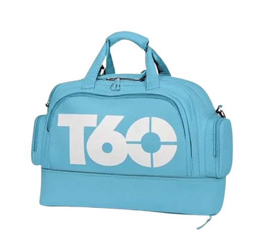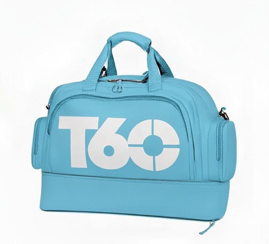 Generic - شنطة رياضية T60 مقاومة للماء بسعة كبيرة مع قسم سفلي منفصل لتخزين الأحذية والملابس الرطبة – تصميم أنيق وعصري للجيم والسفر والرحلات ( Code 250896 ) (بيبي بلو)