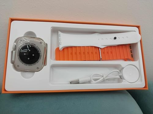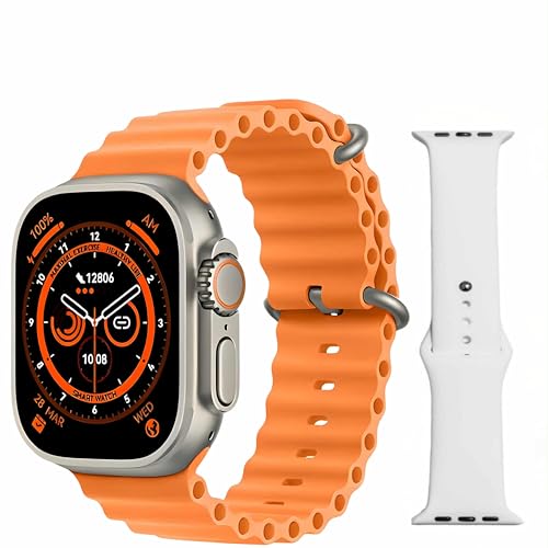 Generic - ساعة ذكية T800 ULTRA NFC الترا بخاصية الاتصال قريب المدى ومكالمات بلوتوث وشحن لاسلكي (اسلفر) 2 استراب نايلون و سيلكون تتبع لياقة بدنية وقياس معدل نبضات القلب وأكسجين ومكالمات