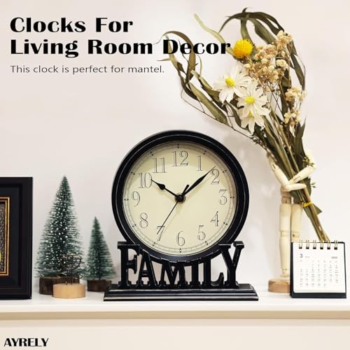 Generic - ساعة طاولة عتيقة بتصميم Family، ساعة مكتب لا تصدر صوت تكتكة، ساعات رترو لغرفة المعيشة وغرفة النوم والرفوف والمدفأة وديكور منزل المزرعة (أسود)