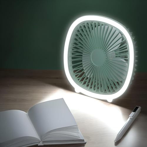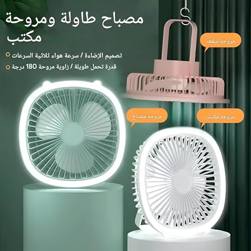 Generic - مروحة طاولة متعددة الوظائف بمنفذ USB مع اضاءة مدمجة وتشغيل فائق الهدوء وشفرات قابلة للتعديل بزاوية 360 درجة للاستخدام الشخصي ومساحة العمل (لون سي)
