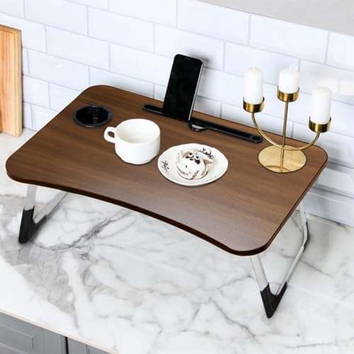 Generic - Table Foldable Laptop With Anti Slip Legs And Holder Portable Bed Desk For Reading Writing Study Adjustable Lap Desk For Sofa Floor Ergonomic Tray Table For Students Home Office Use (Brown)
