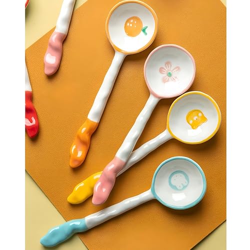 Generic - ملاعق حساء للطاولة - ملاعق مائدة عملية من السيراميك مع مطبوعات فنية ومقابض ممتدة، مثالية للحساء والايس كريم وتجارب تناول الطعام الأنيقة. (قطعة 2)
