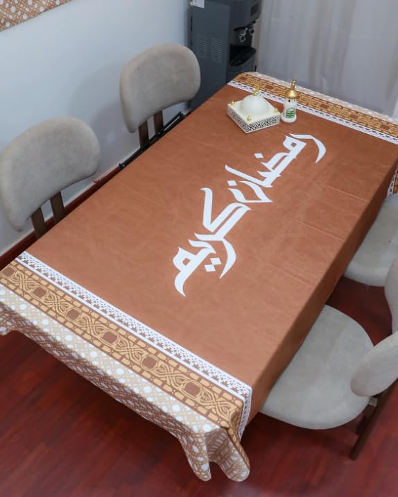 Generic - Tablecloth, Brown with Arabic Calligraphy, Velvety Soft Fabric, Decorative Border Design, Multiple Sizes Available (140 * 240)