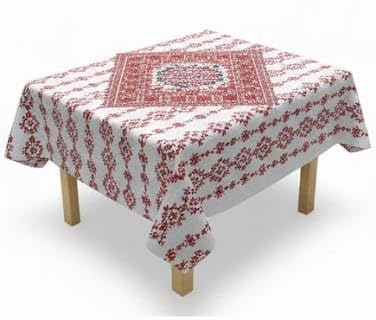 عام - مفرش طاولة بنمط زهور حمراء، قاعدة بيضاء، تصميم تقليدي، غطاء طاولة، رمضان، 1.5 × 1.5