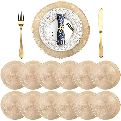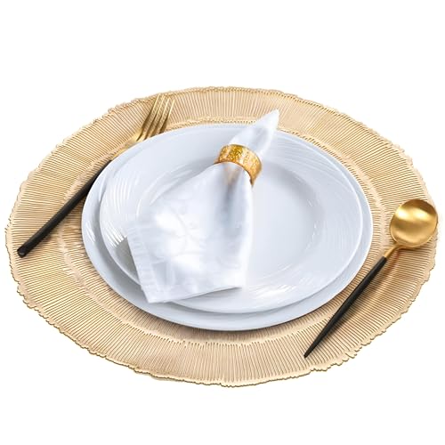 - Elevate your dining experience with these stunning gold placemats, meticulously crafted to blend beauty and practicality, making them the ideal accent for any occasion, from everyday meals to sophisticated celebrations. These placemats effortlessly transform ordinary dining spaces into elegant and inviting areas, enhancing the overall ambiance and creating a memorable setting for guests, ensuring both aesthetic appeal and long-lasting durability for countless gatherings.