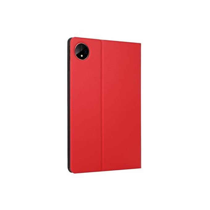 • متوافق مع ريلمي باد 10.6 غطاء حامل قلاب من الجلد للحماية من السقوط (احمر).