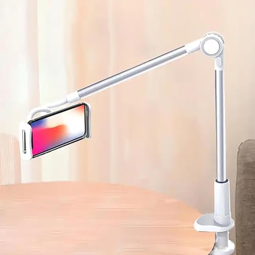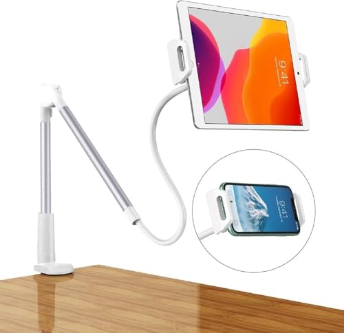Quality Valley - Tablet & Phone Holder, 360° Adjustable iPad Holder Stand for Bed Long Arm Phone Mount for Desk Compatible with for Tablet/iPad/iPhone/Smartphone (4.7"-12.9" Devices) (white)