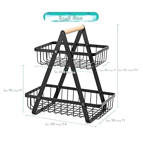 - تتميز سلة الفاكهة متعددة الاستخدامات هذه بتصميم من طبقتين يمكن وضعه على سطح الطاولة، مما يجعلها مثالية لتخزين الخضروات والخبز والفواكه في المطبخ، ومتوفرة باللون الأسود الأنيق لمظهر عصري.