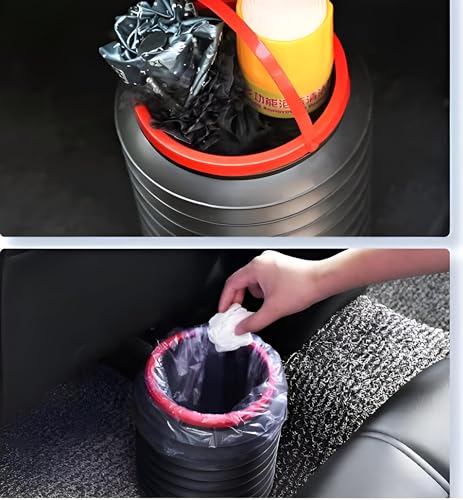 - تصميم متداخل يفتح ويغلق حسب الحاجة، مما يسمح لك بالتبديل بين سلة المهملات المدمجة وصندوق التخزين الصغير دون إهدار مساحة السيارة.