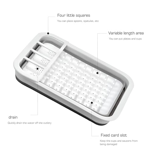- Folding Dishes are designed with user comfort in mind, and it features a removable discharge shelf simplifying the cleaning process. Unlike rust-prone metal drying shelves, it's easy to wipe the solid plastic structure of this product and maintain it, ensuring a healthy kitchen environment. In addition, the compact drainboard directly water in the tub, making your kitchen clean and dry effectively without over-humidity trouble.