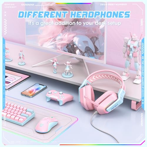 - شريط رأس معلق خفيف الوزن: سماعة الألعاب الوردية مريحة في الارتداء مثل أي شيء. شريط الرأس القابل للفصل رقيق الملمس ويوزع الضغط بالتساوي على الرأس، ومناسب لأشكال الرأس المختلفة