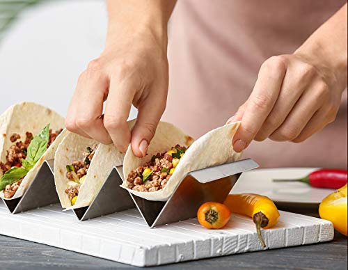 - KEEP TACOS UPRIGHT - Assemble your tacos, big or small, the right way with this taco shell holders to avoid spillage of fillings from baking to eating! It's triangular in shape to eliminate excessive oils and fluids.