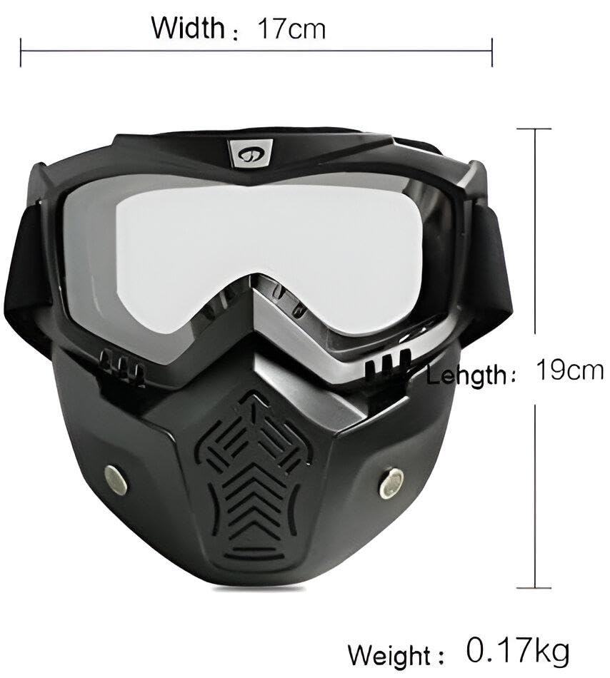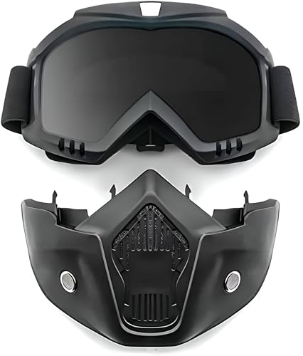 Generic - Tactical Riding Mask - Motorcycle Protective Goggles with Detachable Face Shield, Black Finish, 17cm Wide, 19cm Long, Lightweight for Critical Safety and Comfort