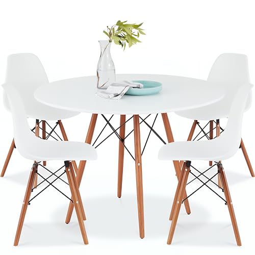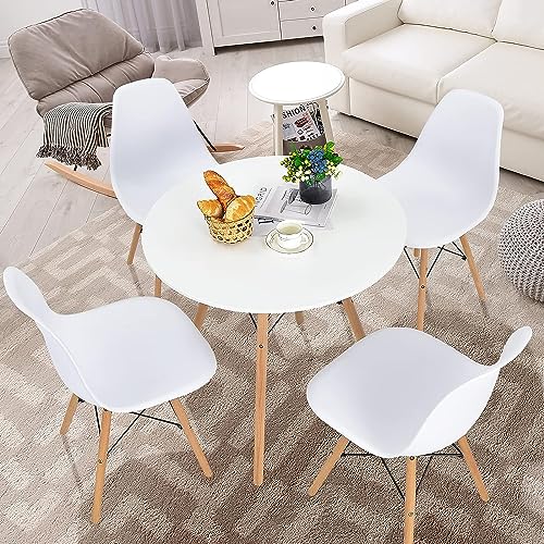 Taimi - طاولة قهوة بتصميم دائري عصري من تايمي، طاولة ترفيه دائرية للمكتب بأرجل خشب مناسبة للمطبخ وغرفة المعيشة مع 4 كراسي