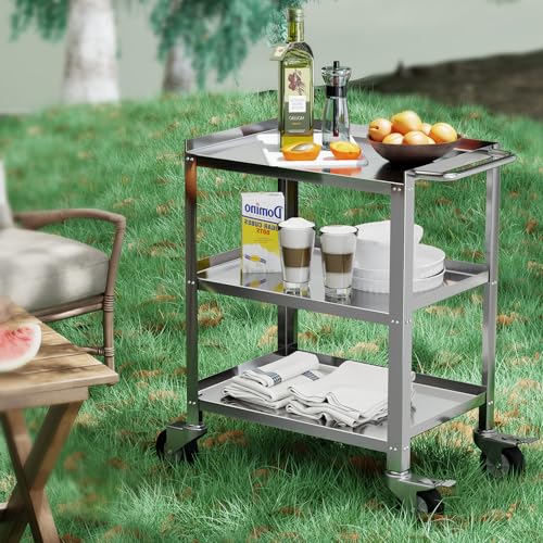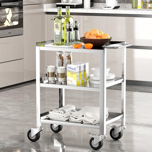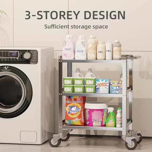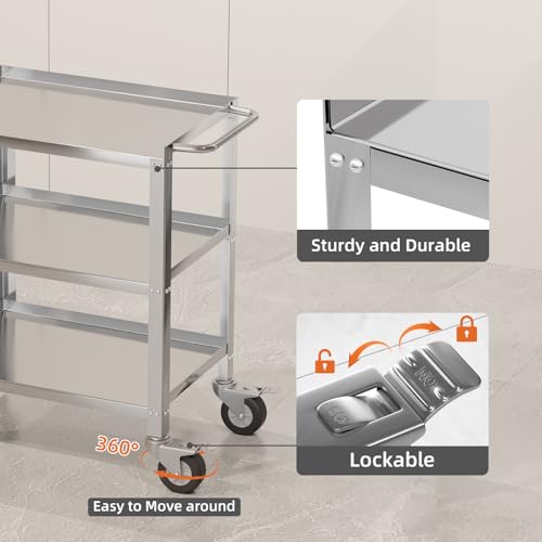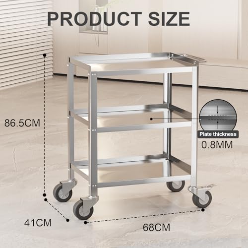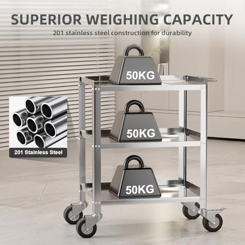 - TOP QUALITY Our heavy duty stainless steel cart is constructed to last. With a thickened construction, each shelf can support up to 50 kg of weight. The surface is polished for better rust and corrosion resistance, making it safe and hygienic for all your storage needs